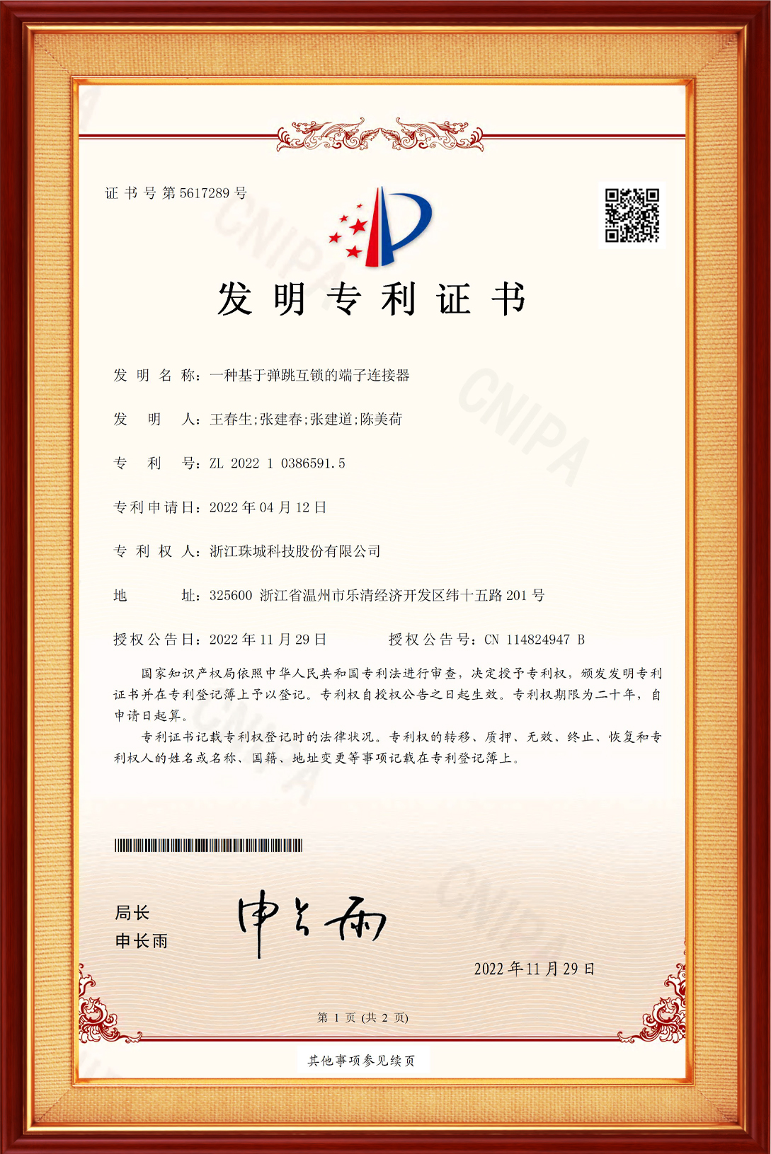 一種用于壓縮機玻璃柱的連接器發明專利證書